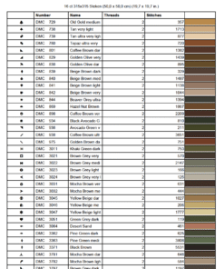 - Size: 50 x 50 cm (315 x 315 stitches)